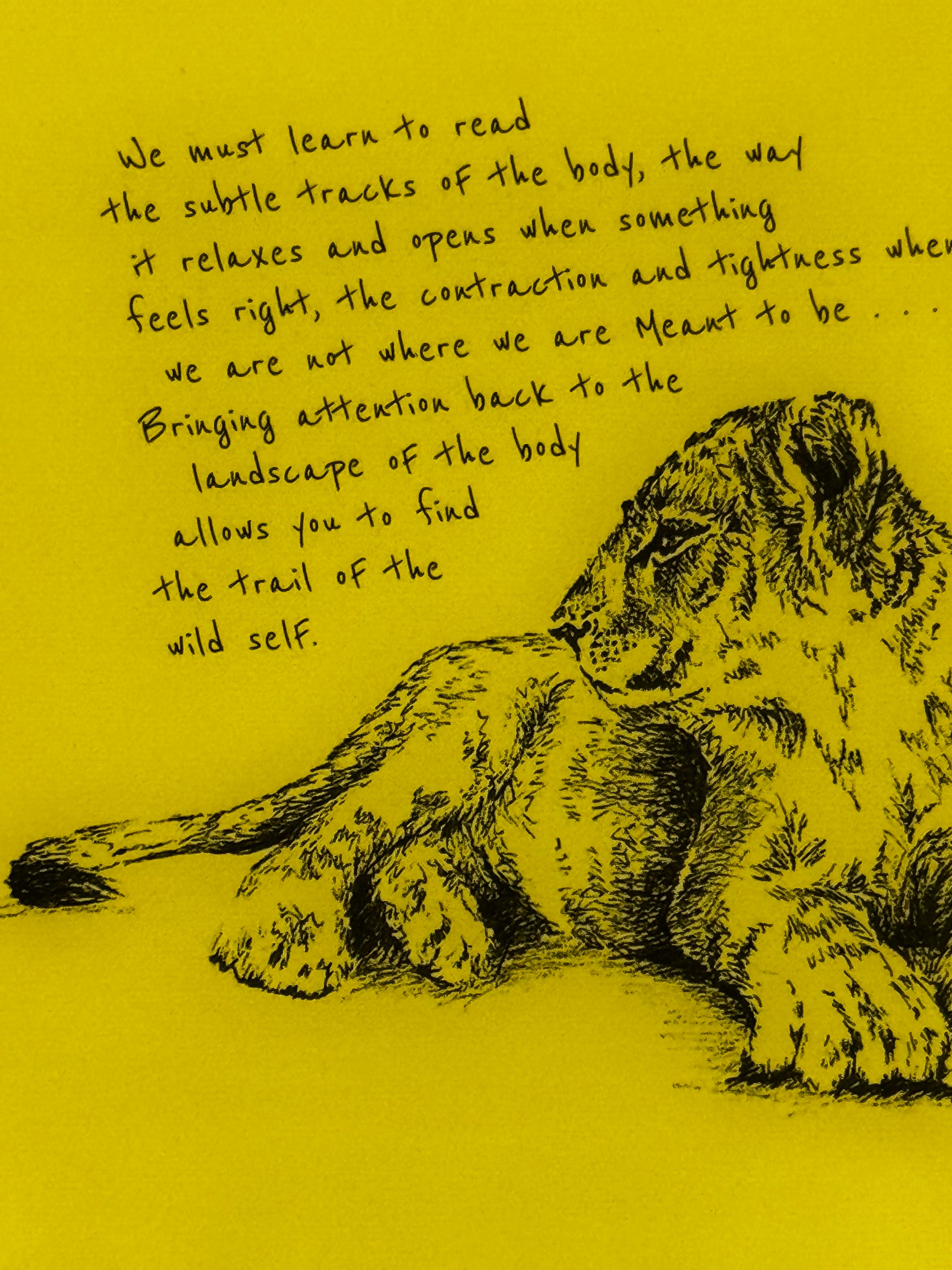 He does not set out into the unlikely chance of finding a lion in the future. He works with what he has now, in the moment. Joseph Campbell said, “If you can see your whole life’s path laid out then it’s not your life’s path.”